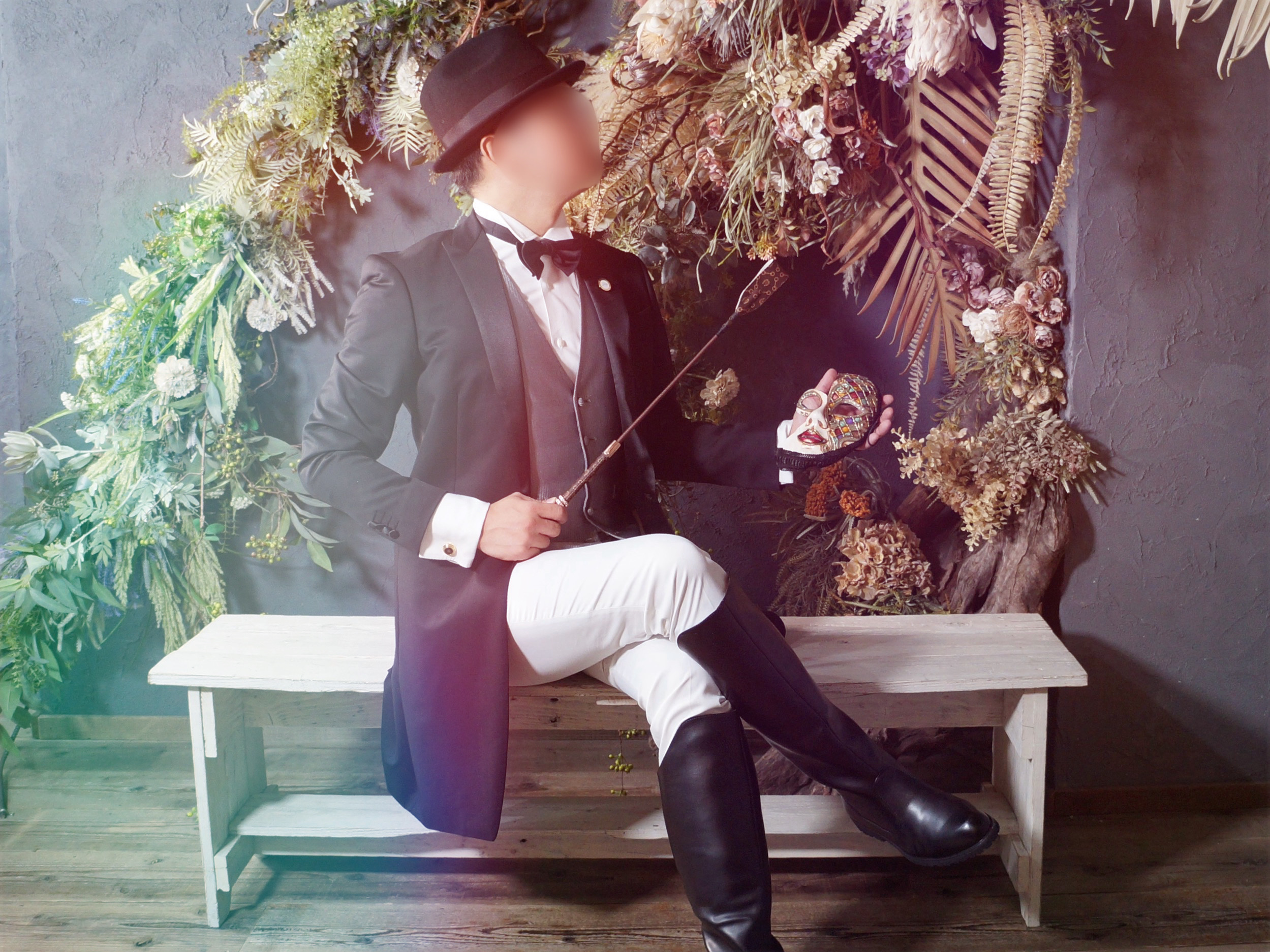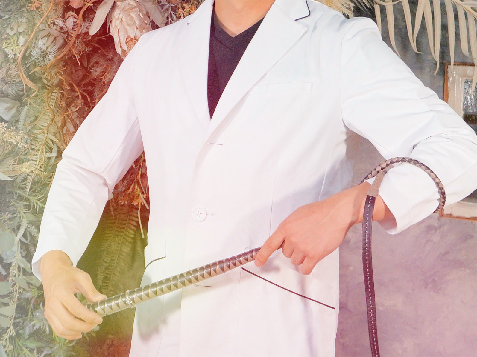 また、セルフプロデュース力にも秀でており、頭の天辺から足の爪先まで整えられ、優雅で気品溢れる雰囲気を感じさせる出立ちです。SMで使用する一つひとつの御道具にも彼の想い・拘りが余すことなく詰め込まれているのが見て取れます。